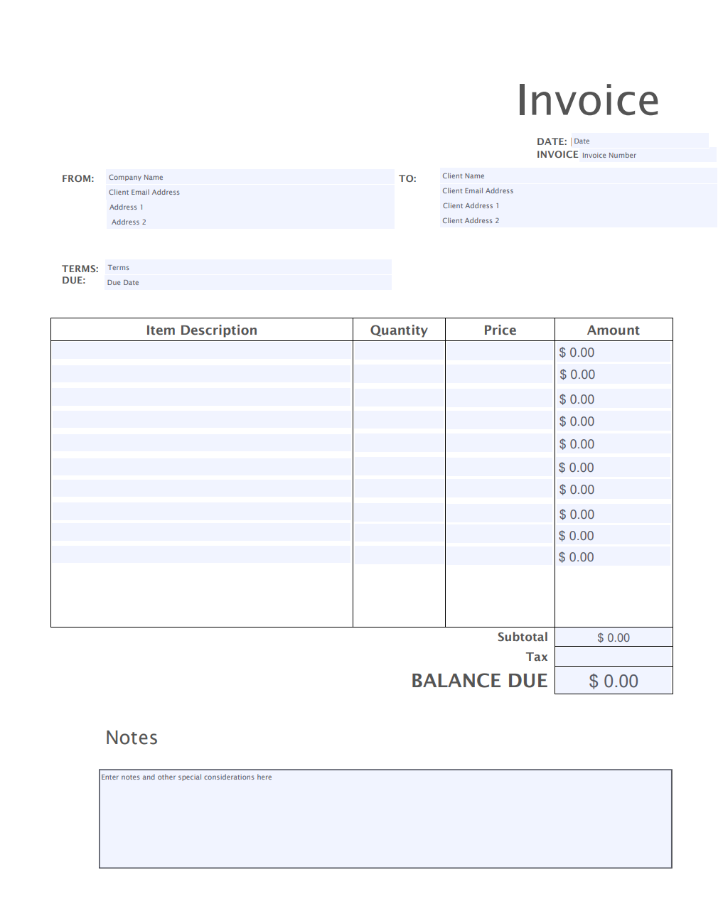 - Payment terms and notes