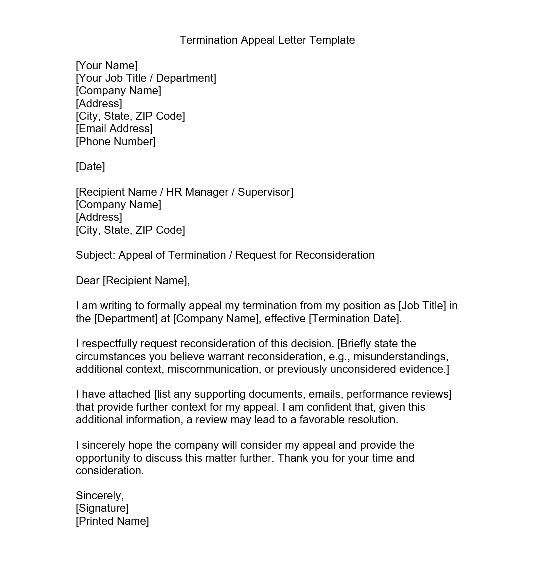• Check the employee handbook or HR policies for procedures regarding termination appeals.